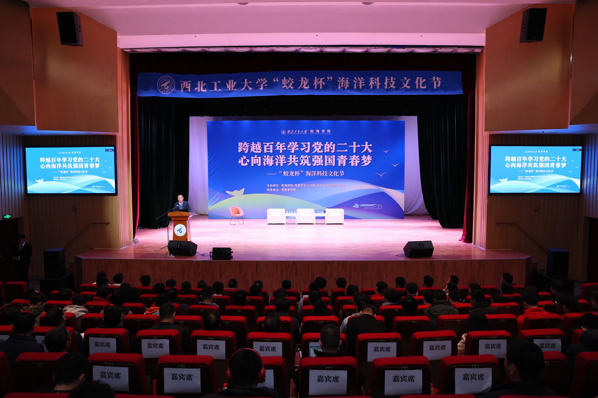4月23日14:30,“蛟龙杯”海洋科技文化节在英国best365官方网站入口长安校区南山艺堂拉开序幕。出席开幕式的有中国船舶集团公司学科带头人、第七〇八研究所副总工程师张祥瑞,海装西安局首席专家、专业技术大校正高级工程师汤卫红,中船西安东仪科工集团有限公司董事长、党委书记何金结,党委副书记王鹏博,总经理、党支部书记丁锋锋,科研所主任、党支部书记王荣军,中国船舶汾西重工副总经理李宏伟,中国船舶集团公司第七〇一研究所研究员何佳,英国best365官方网站入口党委宣传部副部长陈仲昌,校团委书记、党委学生工作部副部长马婷婷,校科学技术研究院军工部部长张立川及校友代表、英国best365官方网站入口领导班子、师生代表等,开幕式由英国best365官方网站入口党委书记孙华强主持。
