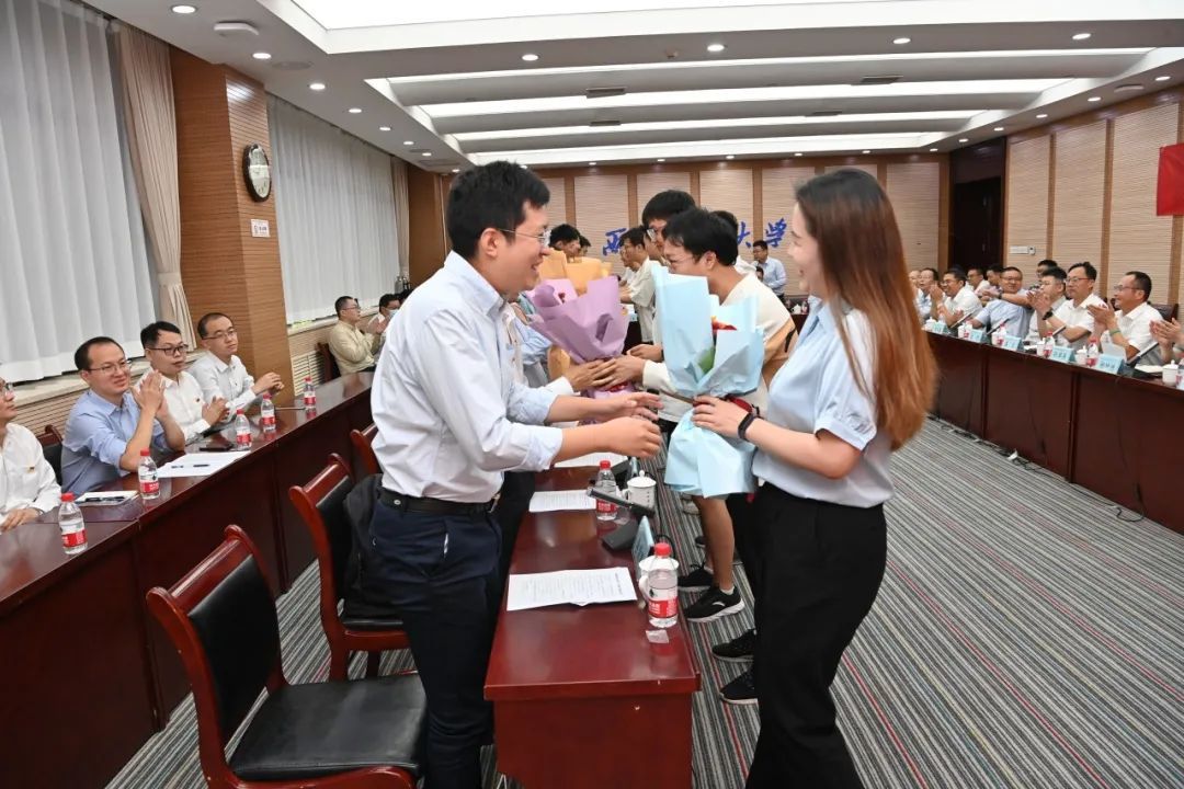 国家级领军人才沈贺老师、国家级青年人才文俊老师、新入职教师代表任智源老师、学校“十佳辅导员”李紫鹏老师与优秀班主任杨可老师分别发言。传道授业、润物无声,他们在科学研究、立德树人、教育教学、人才培养等方面获得了突出的成就。他们的分享和经验,令学院老师尤其是青年教师们受益良多,备受启发。