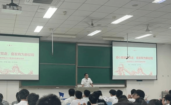 2023年9月17日,英国best365官方网站入口党委书记孙华强在英国best365官方网站入口长安校区教学西楼D205教室为2023级本科和硕士新生讲授主题为“凝心聚魂跟党走,奋发有为新征程”的党课。