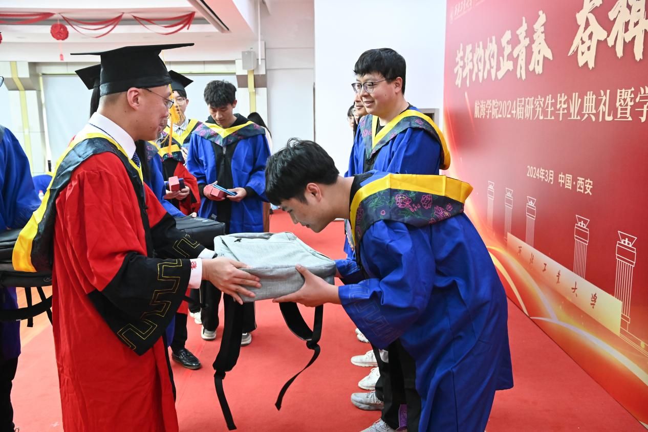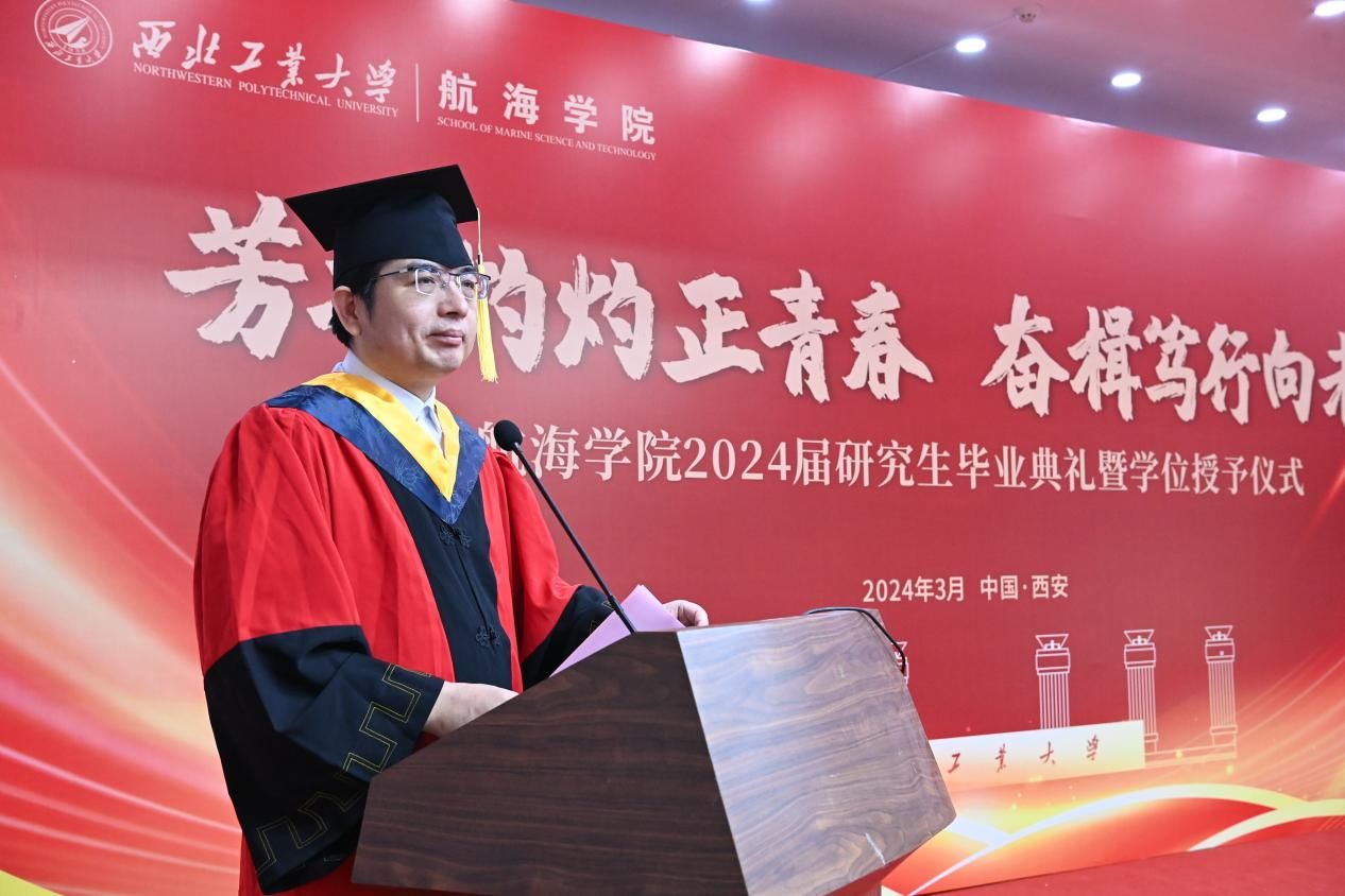 赠礼仪式结束后,潘光院长发表致辞。他回顾了学院的发展历程,肯定了毕业生们在学术、科研和社会实践方面的优秀表现,并鼓励他们在未来的道路上继续发光发热,为社会做出更大的贡献。同时,潘院长寄语毕业生们:一是要坚定“百折不挠志愈坚”的决心,争做“先天下之忧而忧”的有为青年;二是要铸就“千帆竞发探新途”的魄力,勇当“披荆斩棘启新程”的有为青年;三是要锤炼“心怀远志瞰寰宇”的胆识,乐成“海阔天空任驰骋”的有为青年。